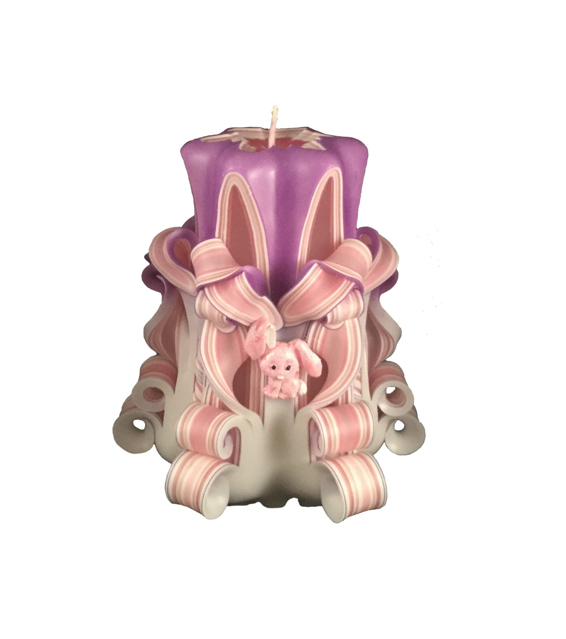 Carved Pink & Purple Easter Bunny Pillar Candle