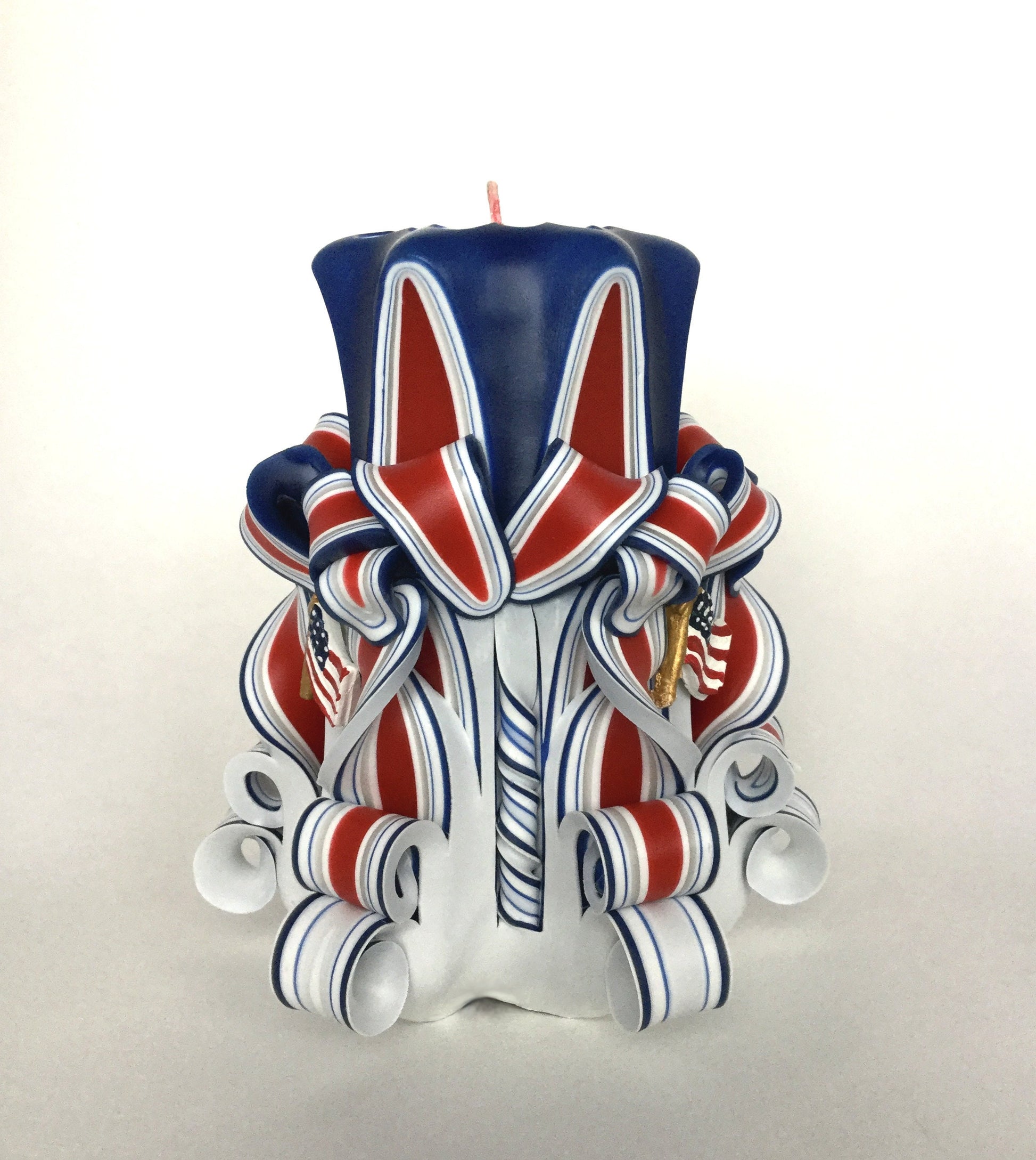 Hand-Carved Patriotic Candle Set with Flag Accents