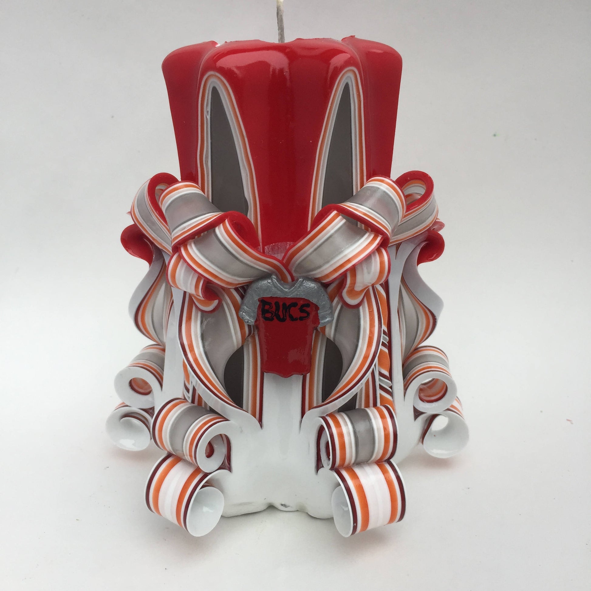Hand-Carved Tampa Bay Buccaneers Inspired Pillar Candle - 5 Inch