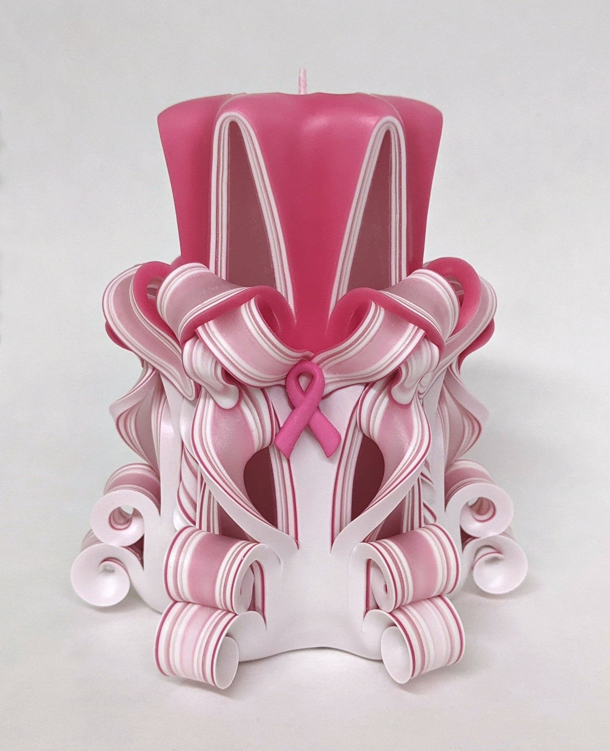 Handmade Carved Pink Ribbon Support Candle - 5 Inch