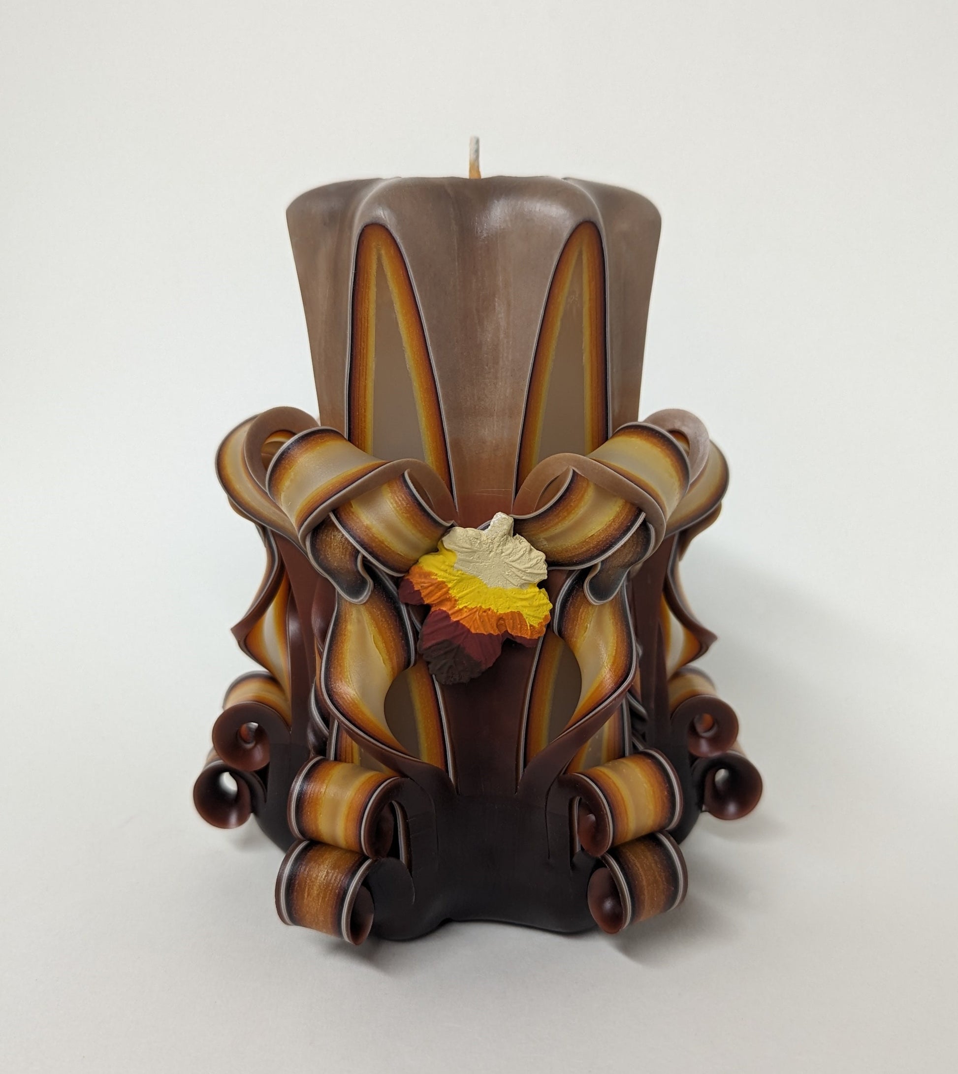 Handmade Earth Tone Autumn Leaves Carved Candle Set