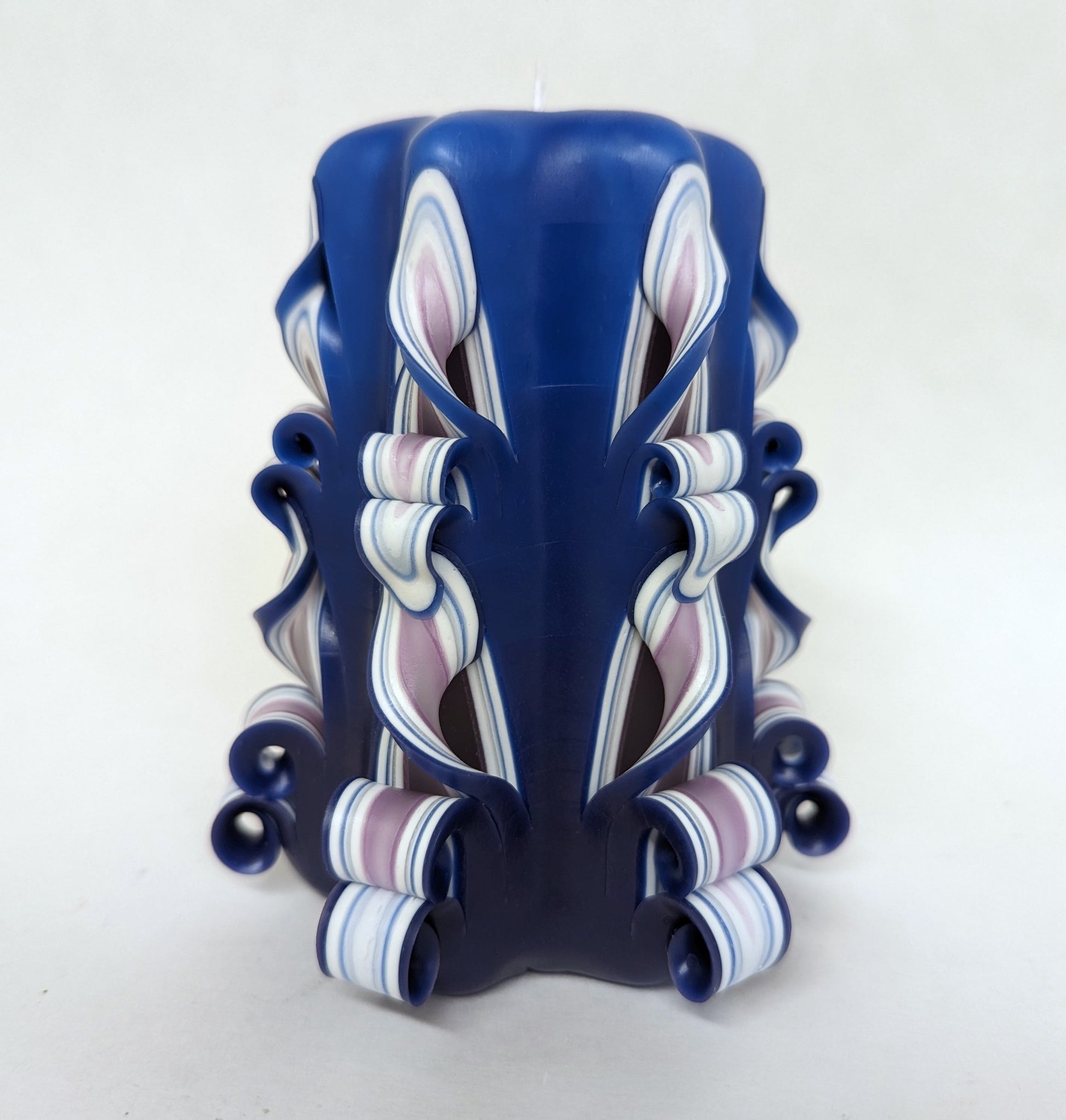 Handmade Shaded Purple and Blue Carved Pillar Candle - 5 Inch